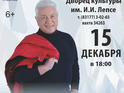 Владимир Винокур и Артисты Театра пародий приглашают Вас на свой концерт, где Вас ждут любимые юмористические монологи, новые шутки и анекдоты, яркие пародийно- музыкальные номера, главным героем которых является, конечно же, сам Владимир Винокур. 15 декабря, большой зал Дворца культуры …