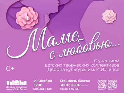 Дорогие друзья! Приглашаем вас на наш особенный детский концерт, посвященный самым важным и любимым людям в нашей жизни — нашим мамам! 29 ноября 13:00 Большой зал Дворца культуры им. И.И.Лепсе Наши маленькие артисты подготовили песни, танцы и яркие творческие номера, …