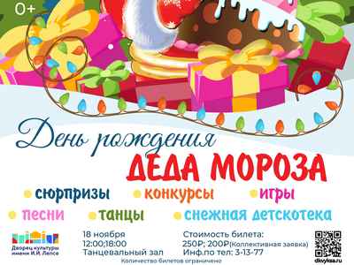 Привет, дорогие ребята! Это я, ваш добрый Дед Мороз! У меня для вас потрясающая новость! 18 ноября я буду праздновать свой день рождения! И хочу пригласить всех вас на весёлый праздник! Мы будем играть, петь веселые песни, танцевать под звуки …