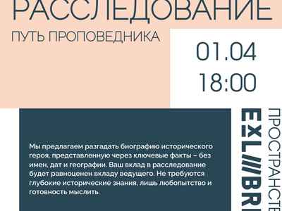 Приглашаем на вторую встречу цикла «Пути», где мы отправимся в захватывающее историческое расследование жизни и судьбы проповедника. Участников ждёт погружение в переломную эпоху, разгадывание тайн прошлого и неожиданные открытия. Проект ведёт Татья…