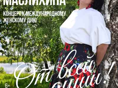 Дорогие друзья! 5 марта, в преддверии празднования Международного женского праздника, Светлана Маслихина приглашает вас на концерт “От всей души!”, который пройдет в Большом зале Дворца культуры им. И.И.Лепсе