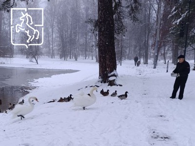 До весны лебеди будут жить в тёплом ангаре на территории парка.
