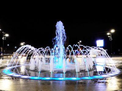 На площади Октябрьской революции состоялся пробный пуск светомузыкального фонтана