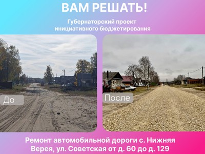 Благодаря губернаторскому проекту «Вам решать!» в этом году в Нижней Верее отремонтировали самую протяжённую улицу села – Советскую.