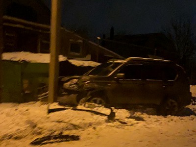 Nissan X-Trail врезался в столб на улице Титова в Досчатом сегодня около 18:00